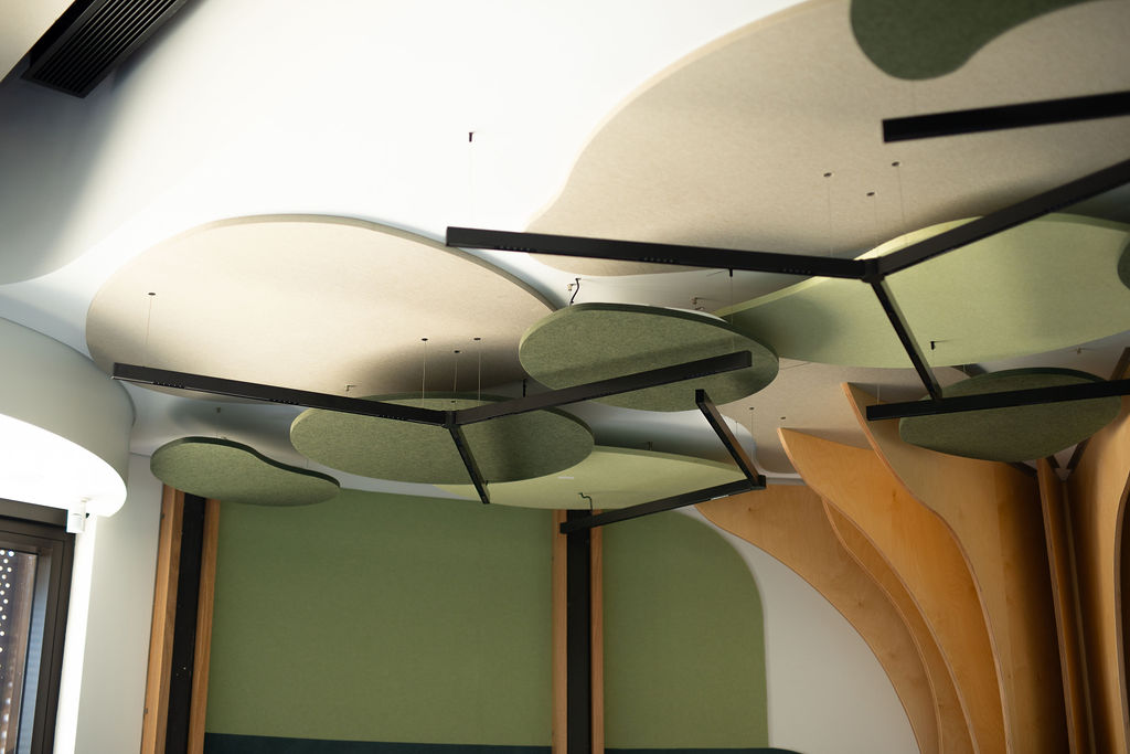 Product (Green Shapes): Woven Image Echopanel 12mm, Colour 381 L/Splice